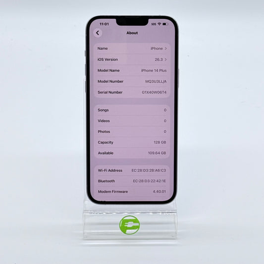 Factory Unlocked Apple iPhone 14 Plus 128GB Purple MQ3U3LL/A