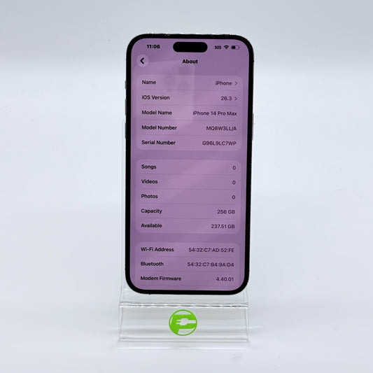 Factory Unlocked Apple iPhone 14 Pro Max 256GB Deep Purple MQ8W3LL/A